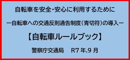 - 2025年9月5日警 察 庁自転車を安全・安心に利用するために ー自転車への交通反則通告制度(青切符)の導入ー 【自転車ルールブック】